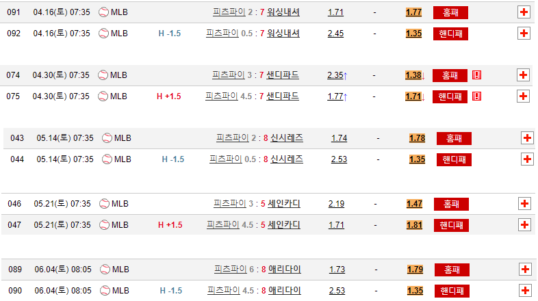 피츠는 토요일 1승 7패를 기록하고 있으나 홈5경기에서 5패를 기록중입니다