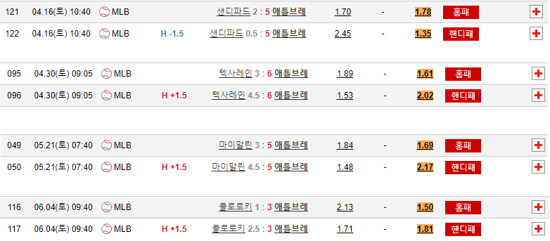 ATL Braves WIN -1.5 총 배당 : 3.48