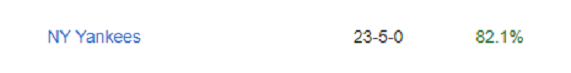 양키는 지난시즌과 올시즌에 원정에서 역배를 받은 28경기에서 23플핸을 성공했습니다.
