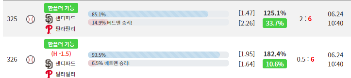 어제 샌디승이 좋아보인 사람은 이 경기가 필라승이 많이 좋아보일수밖에 없습니다