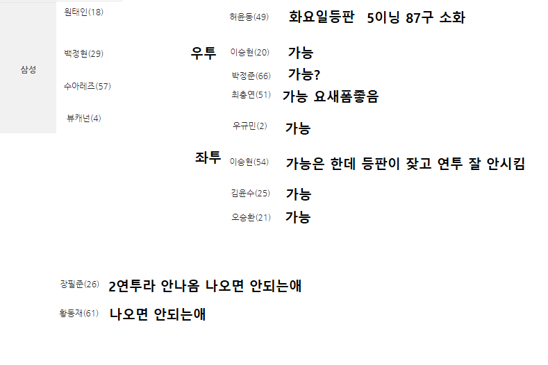 불펜의 양과 질이 좋기때문에 어느정도 커버가 가능합니다