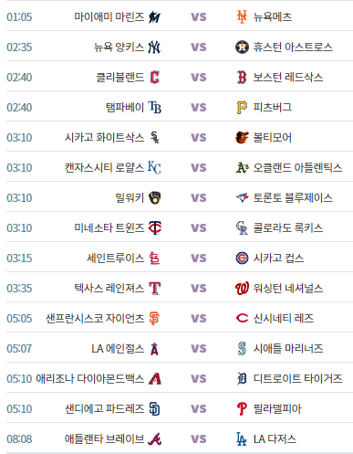 양키휴지  애틀다저  밀웍토롱 샌디필라 이렇게 강대강 경기도 많고요