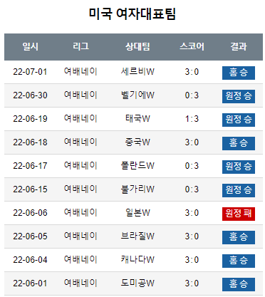 미국의 9승 1패중  9승은 3-0 , 3-1 승 입니다