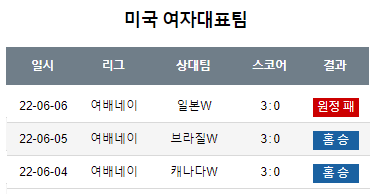 미국의 1패는?  3일 연속 경기를 치루다가    일본에게 잡힌것 말고는 없습니다