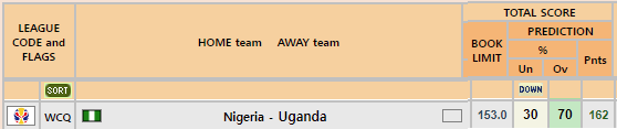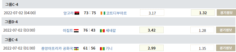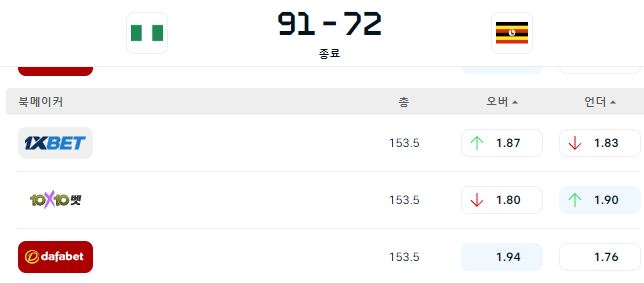 지금 경기가 거의 끝난 나이지리아 VS 우간다 경기는  언옵기준점이 153 전후 입니다