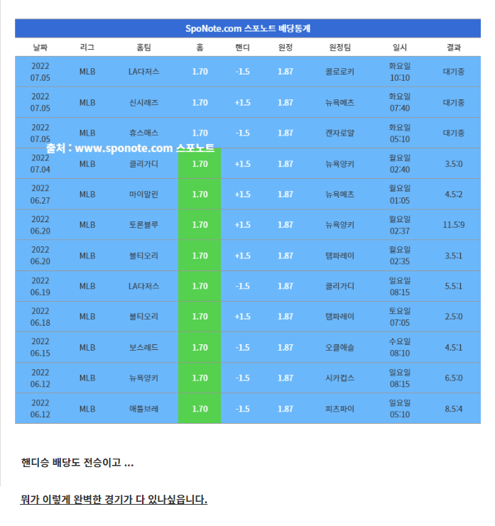 기본적으로 메츠가 홈이면 메츠승을 아무런 분석없이 찍어도