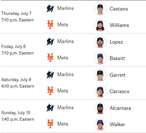 메츠와 마앰은 오늘부터 4연전을 치룹니다