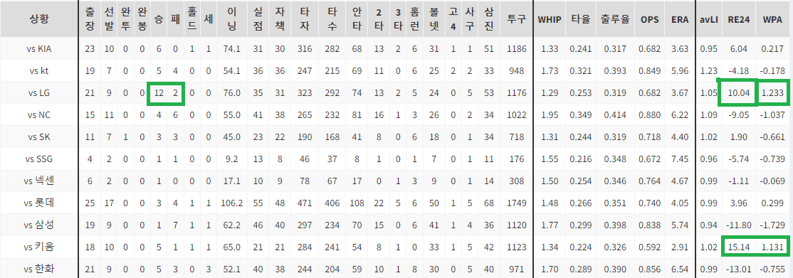 시리즈자체가 아무래도 엘지가 위닝이상을 기록하는게 어쩌면 맞기때문에