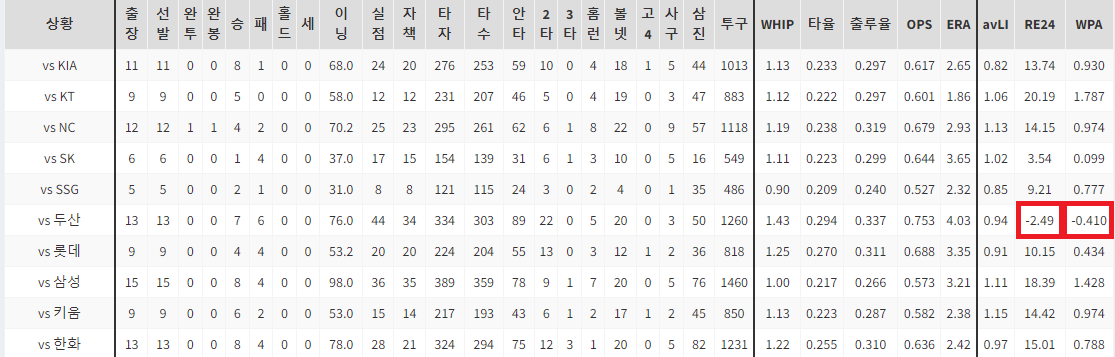 왜냐면 켈리가 유일하게  커리어상     두산에게 가장 약합니다.