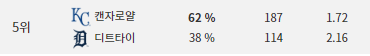 1차전이 디트역배에 몰렸고   , 2차전이 캔자정배에 들어간 경기입니다
