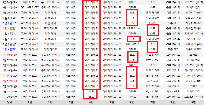 이게 요코의 최근 2주간의  타선 라인업 입니다.
