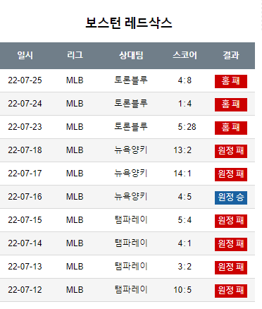 보스턴 타격 최근10경기 기준   총 40득 입니다.