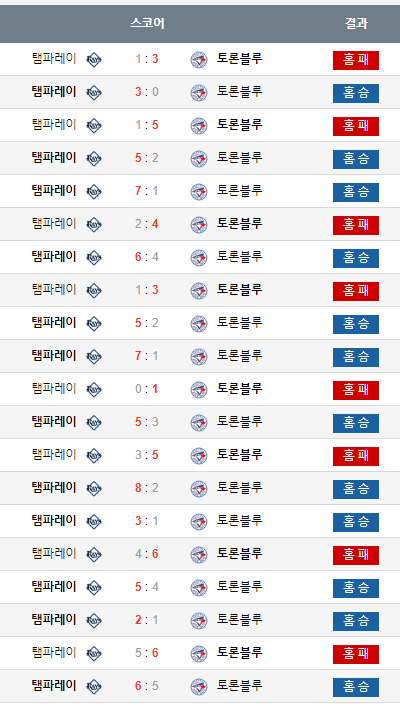 MLB 에서 그리고 최근에 템파랑 토론토는 1점차 접전이 잘 없어요