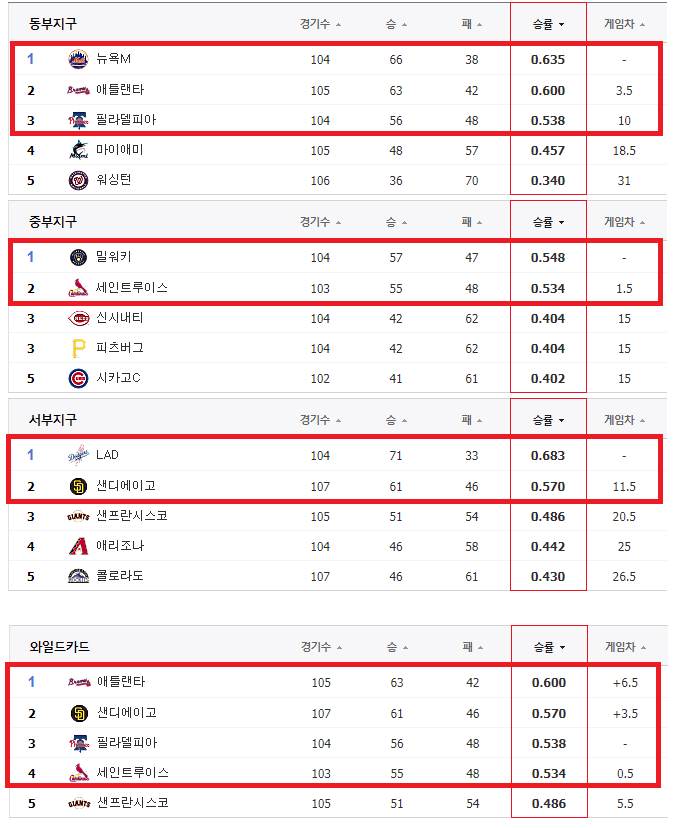다저스는 지구1위 싸움을 하는팀은 아니져