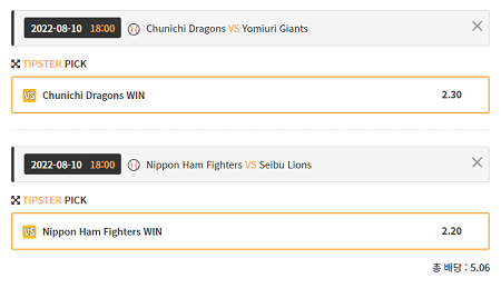 Chunichi Dragons WIN 중복 팁스터를 후원으로 응원해주세요!