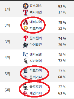 셋째.해당경기는 미국시간으로 낮경기인데 MLB전체1위 낮경기 승률팀이 휴스턴이다.