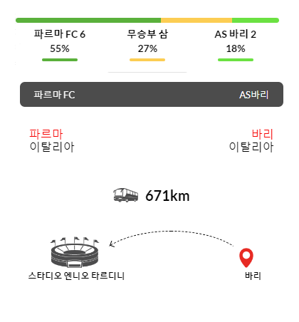 저번시즌은 파르마는 2부 팀이고 , 바리는 3부팀 이었습니다