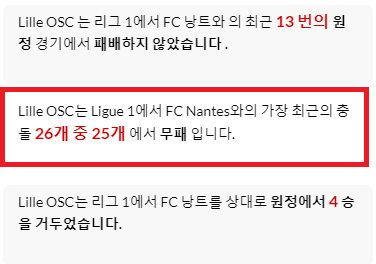 릴이 낭트와의 최근 26경기에서 1패를 기록한 부분