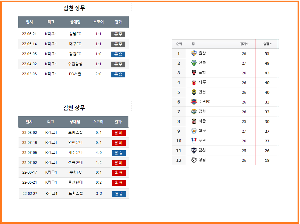 홈팀 상주의 기록을 살펴볼 필요가 있는데