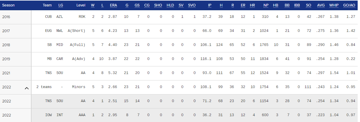 마이너에서 기록을 찾아보니
