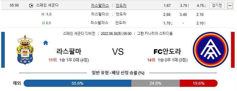 이 경기가 안도라플핸이면 45% 정도져.     역배플핸은 40프로에서 60프로 사이일겁니다