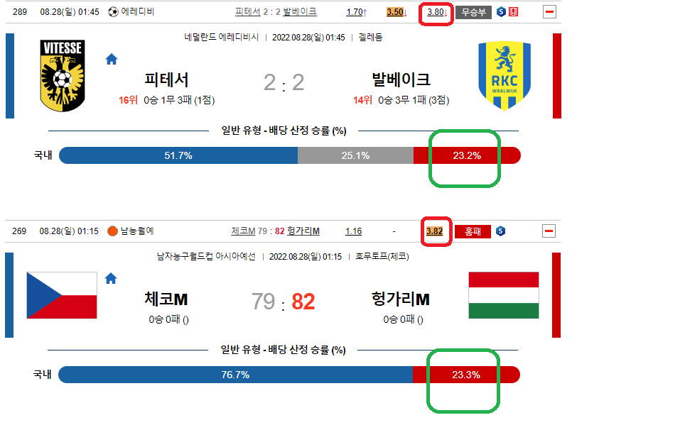 농구배당에서  원정헝가리 역배가 23% 정도져 .