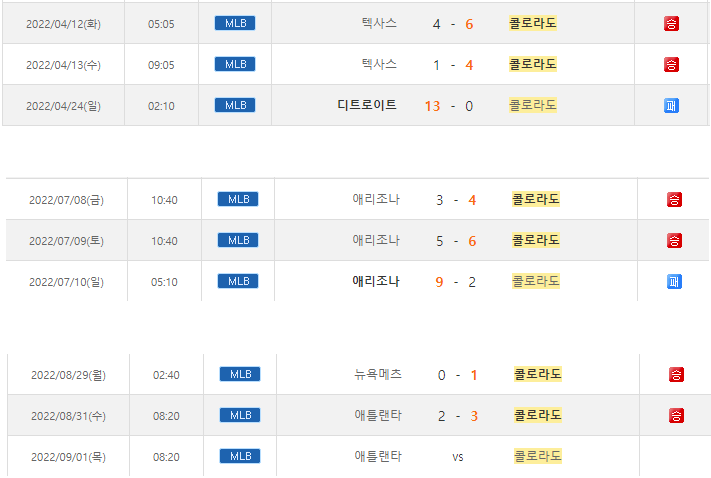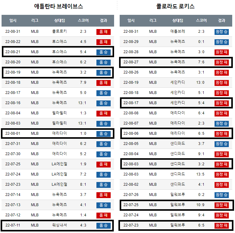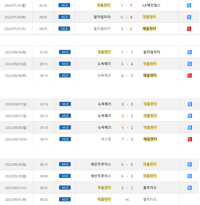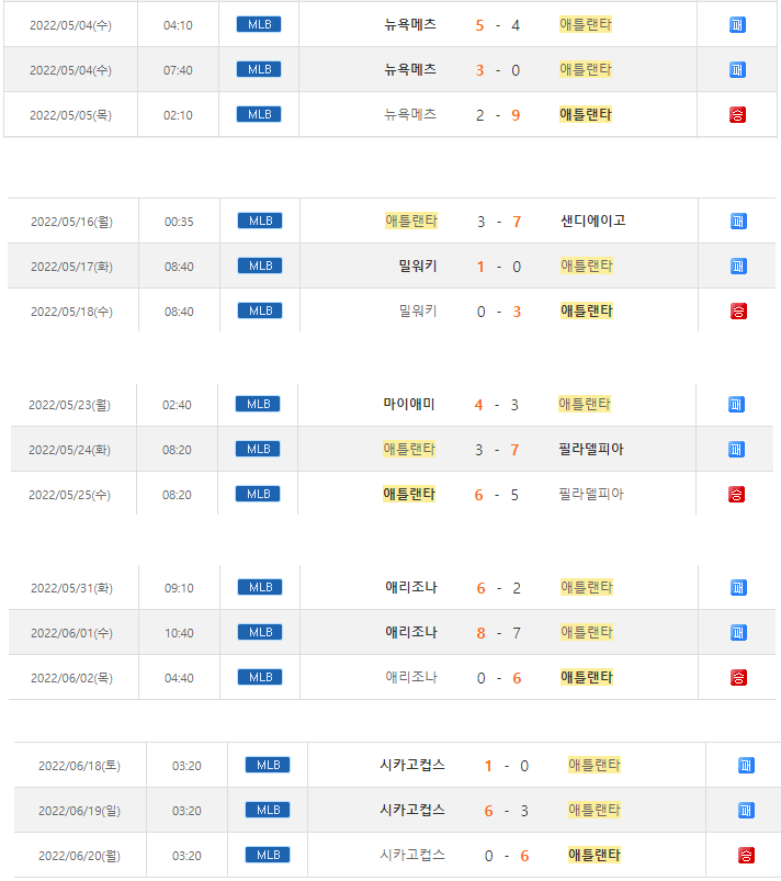 애틀콜로 하고 신시세인 경기를 상대적으로 비교를 해보세요