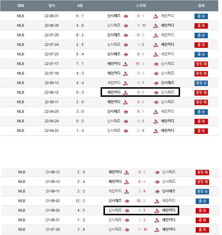 첫번째는 신시가  세인트한테 연승이 잘없다