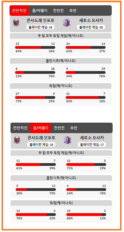 홈에서 삿포로가 3연패를 할거같지는 않고 , 참고위에는 전체고 지금 이거는 홈/원정 입니다