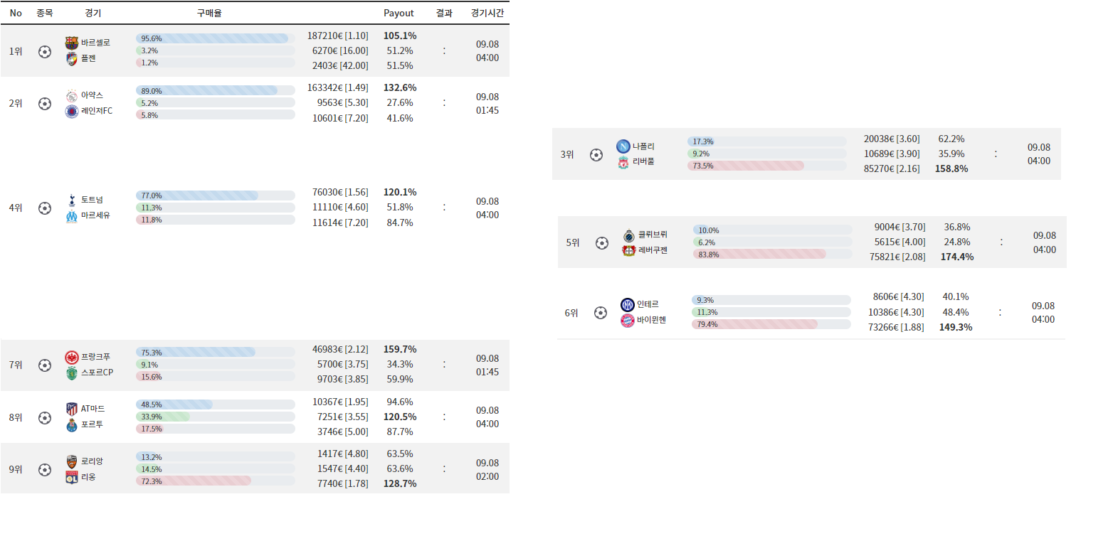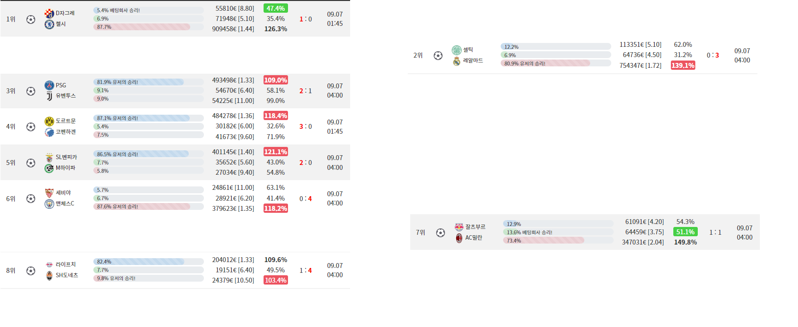 어제 챔스결과를 보니깐 어느정도 맥이 잡히는 경기가 포착되네요