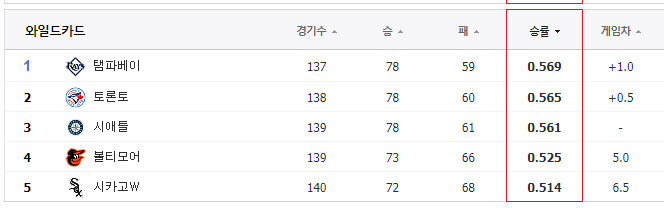 시애틀과의 승수차이 6.5게임