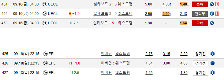 웨햄을 보면   첼시한테 2-1 패배. 무난