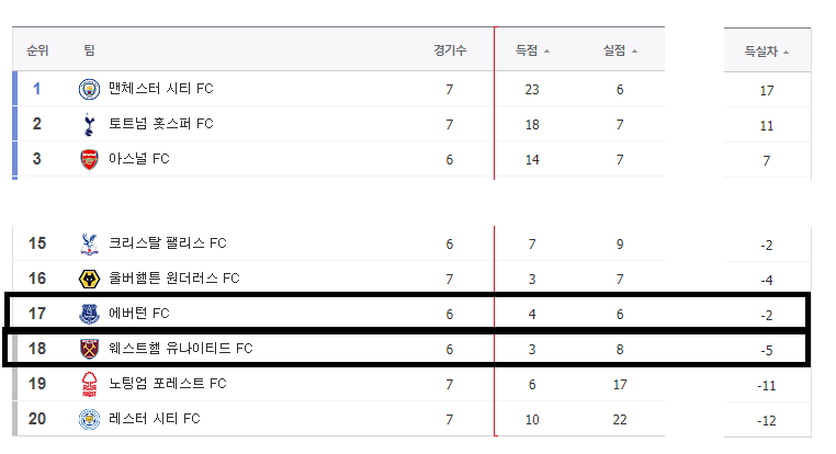 굳이 시즌 기록이 에버턴 보다 나은것도 아닌데