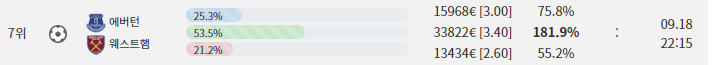 Everton WIN 총 배당 : 4.68