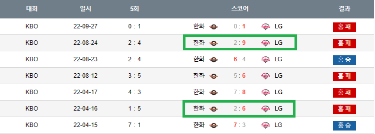 다음  마지막     한화 대 엘지