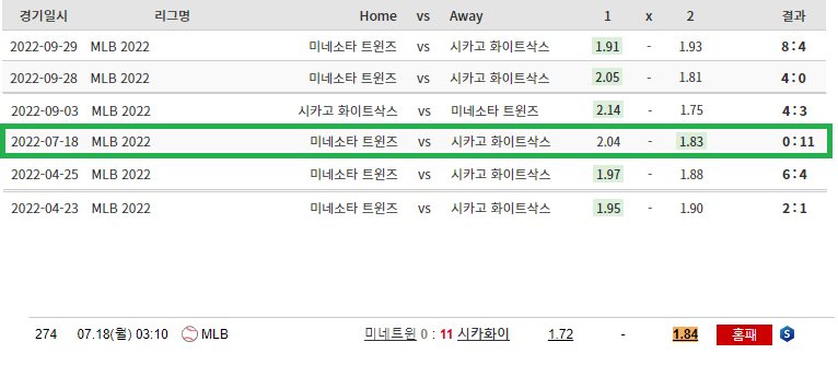 MIN Twins WIN 총 배당 : 2.05