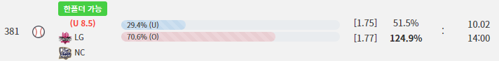 엘지는 홈에서 최근 18경기 17언더 중 입니다