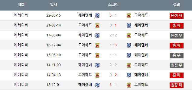 양팀의 상대전적상 고에헤드가 헤렌벤을 상대로