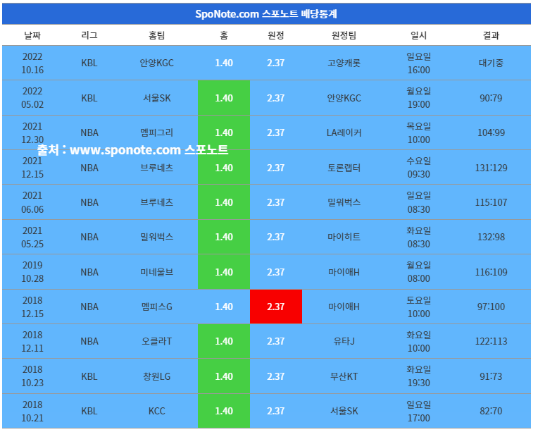 KBL에서 홈승배당이 1.4대 일때 올해 19경기 18승 입니다