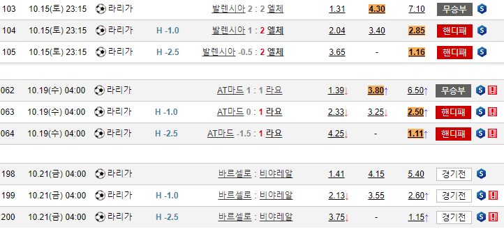 연거푸 무승부가 나면서 나름 쓰나미가 났는데 라리가에서 2.5핸디 경기가