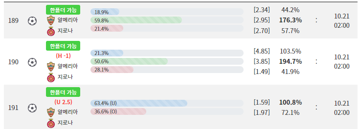 그러나 여러가지 스킬들이 존재하는데 현재 라리가에서 2.5핸디를 받은 직전2경기가