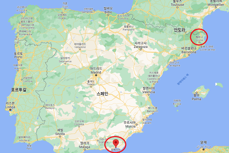 바르샤.파뇰.지로나    요세팀이 까달루냐 지방 입니다.  1시방향 구석