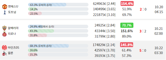 지난 3일동안 저는 국내배터들의 구매율이 맨유16% , 알메리 19% ,  마인츠26%