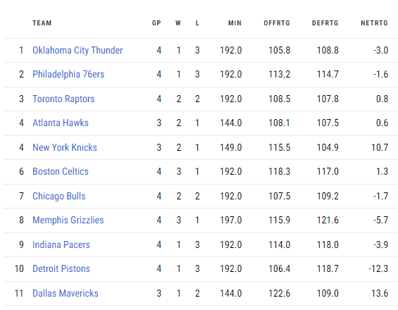 거의 대부분의 팀들이 3-4경기 정도를 진행했는데 초반에 수비가 안좋은팀들은
