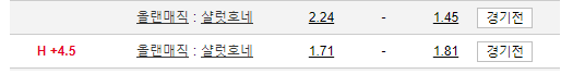 오늘 디트가 애틀과 홈에서 연전을 치루는데 지난경기에서는 7.5핸디를 부여받았고 애틀이 5점차로 이겼습니다