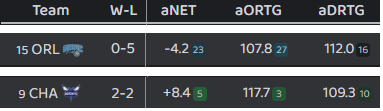 반대로 올랜도는  공격27위 , 수비 16위     넷레이팅은 -4.2로 전체23위 입니다