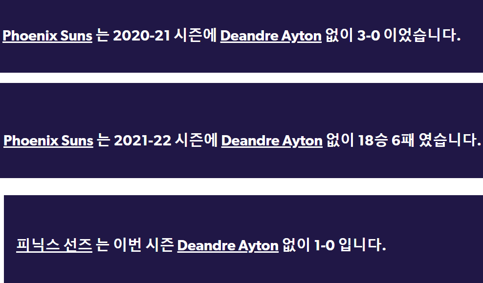 피닉스 에이튼 없을때 결장시 승률 첨부하였습니다.