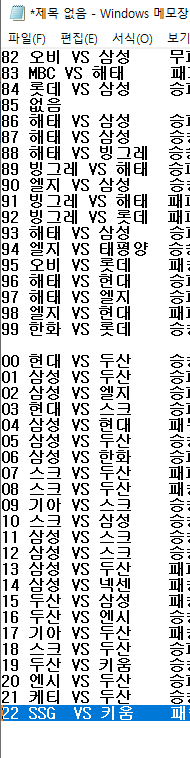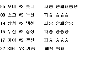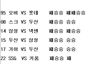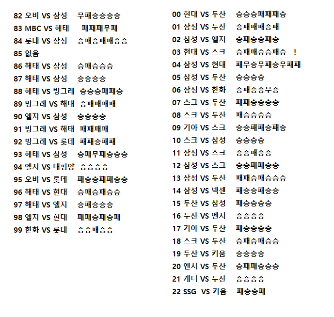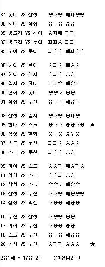 예전기록에서 무승부가 중간에 껴있고 이런건 몇개 배제했습니다.