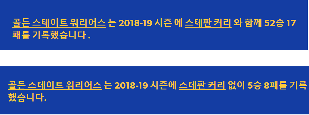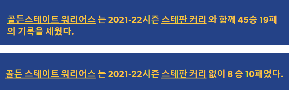 듀란트가 당시에 있었음에도 골스는 커리가 결장시에 승률이 없을때와 있을때의 차이가 굉장히 큽니다