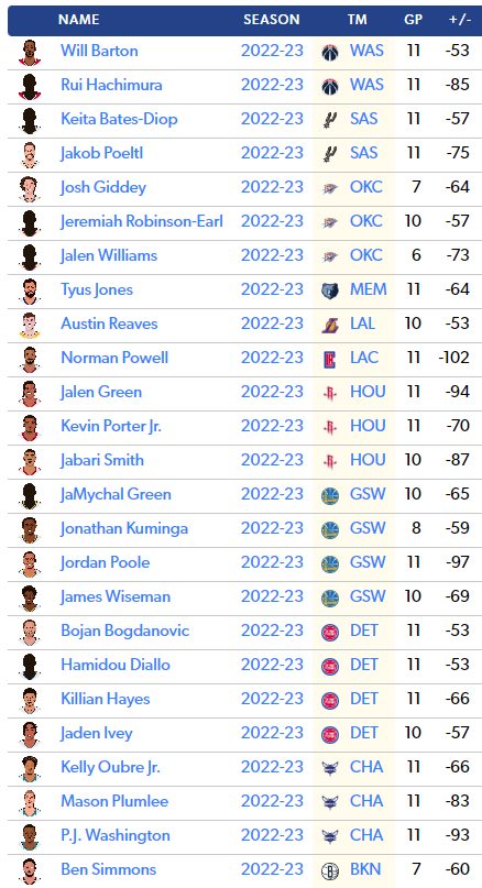 반대로 코트위에 있으면 점수까먹는 선수들 명단 입니다